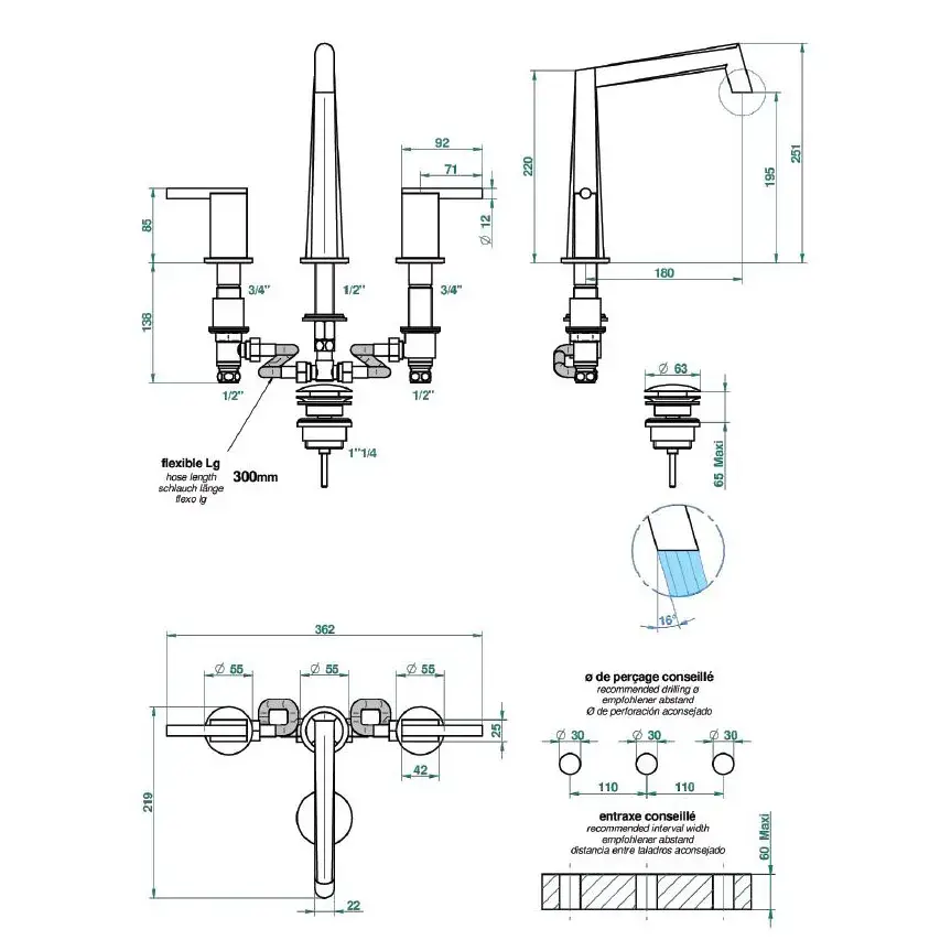 Смеситель для раковины THG Montaigne Leonardo Grey marble G3U-151