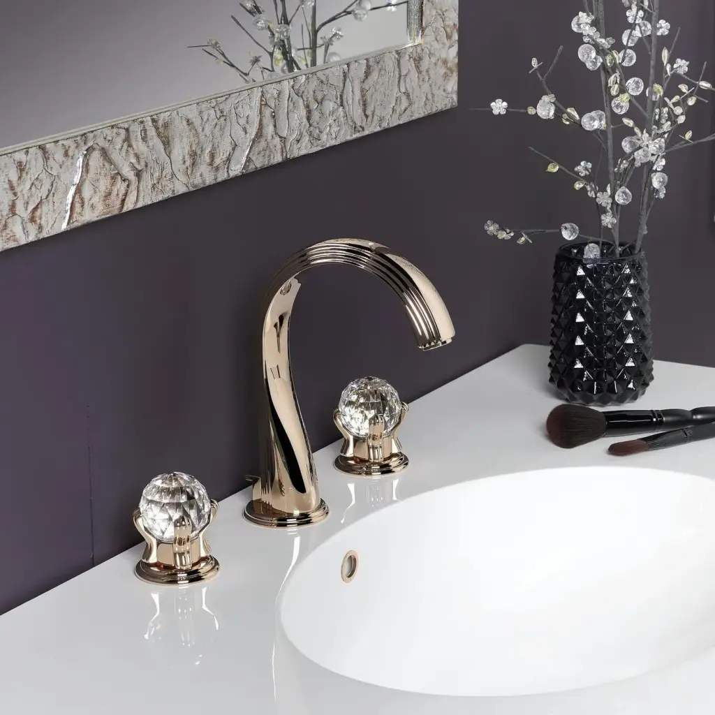 THG Najem Смеситель для раковины на 3 отверстия, с донным клапаном, цвет: полированное золото