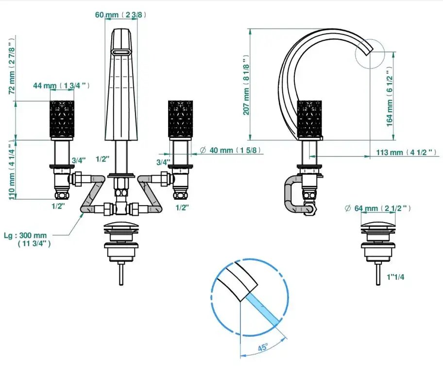 Смеситель для раковины THG Nihal porcelaine U2N.H52.151 золото PVD (H52)