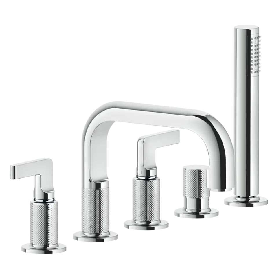 Gessi Inciso+ Смеситель для ванны на 5 отверстий с изливом, переключателем, ручным душем и шлангом 1,50 м., цвет: black XL