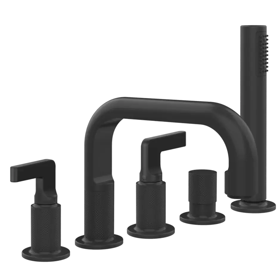 Gessi Inciso+ Смеситель для ванны на 5 отверстий с изливом, переключателем, ручным душем и шлангом 1,50 м., цвет: black XL