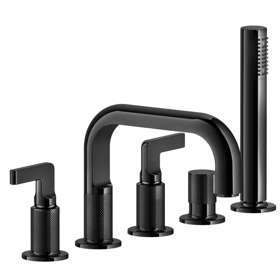 Gessi Inciso+ Смеситель для ванны на 5 отверстий с изливом, переключателем, ручным душем и шлангом 1,50 м., цвет: black XL