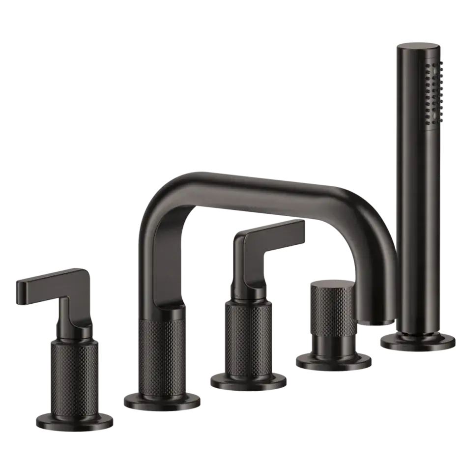 Gessi Inciso+ Смеситель для ванны на 5 отверстий с изливом, переключателем, ручным душем и шлангом 1,50 м., цвет: black XL