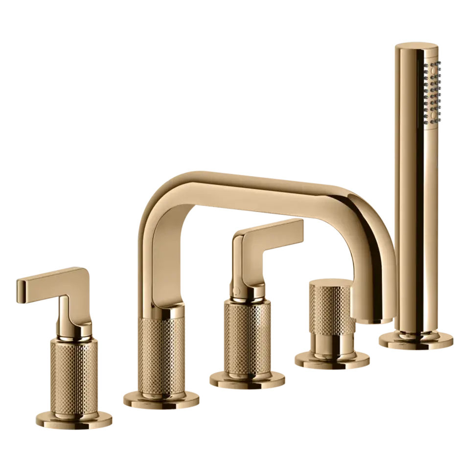 Gessi Inciso+ Смеситель для ванны на 5 отверстий с изливом, переключателем, ручным душем и шлангом 1,50 м., цвет: black XL