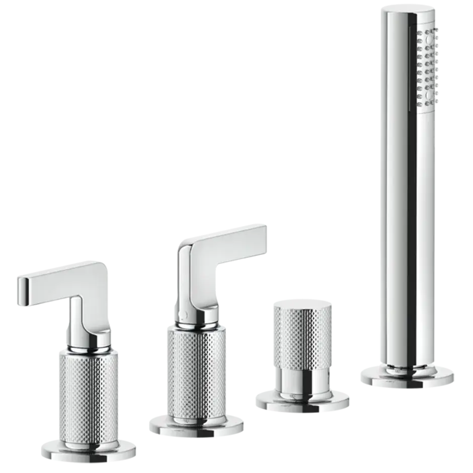 Gessi Inciso+ Смеситель для ванны на 4 отверстия для наполнения через слив-перелив, переключатель, шланг 1,50 м, цвет: black XL