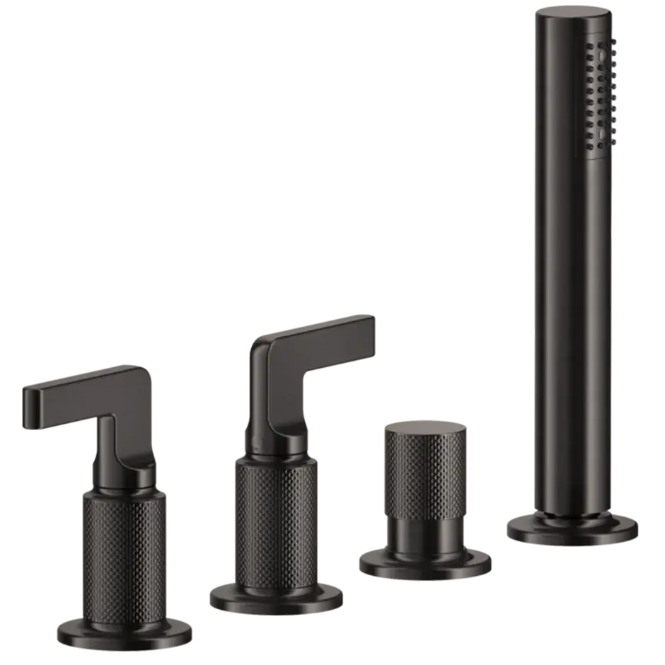 Gessi Inciso+ Смеситель для ванны на 4 отверстия для наполнения через слив-перелив, переключатель, шланг 1,50 м, цвет: black XL