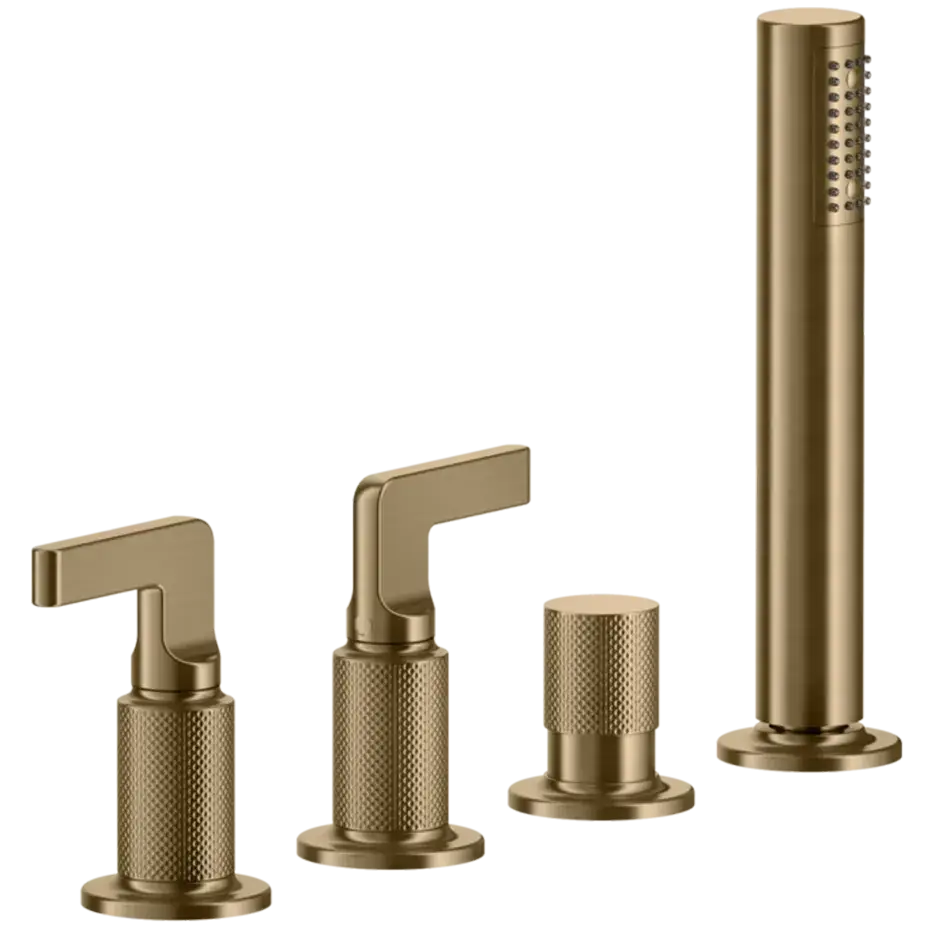 Gessi Inciso+ Смеситель для ванны на 4 отверстия для наполнения через слив-перелив, переключатель, шланг 1,50 м, цвет: black XL