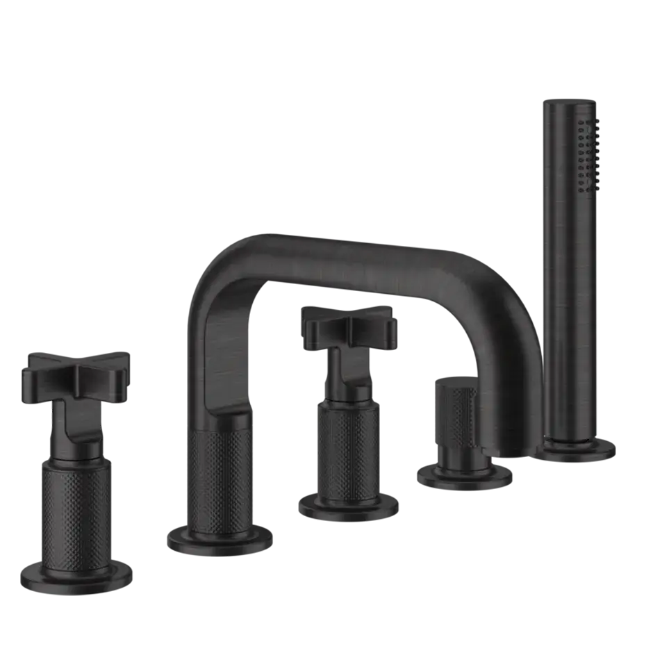 Gessi Inciso+ Смеситель для ванны на 5 отверстий с изливом, переключателем, ручным душем и шлангом 1,50 м., цвет: black XL