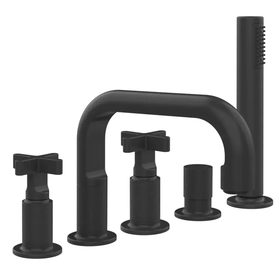Gessi Inciso+ Смеситель для ванны на 5 отверстий с изливом, переключателем, ручным душем и шлангом 1,50 м., цвет: black XL