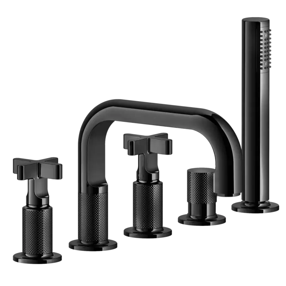 Gessi Inciso+ Смеситель для ванны на 5 отверстий с изливом, переключателем, ручным душем и шлангом 1,50 м., цвет: black XL
