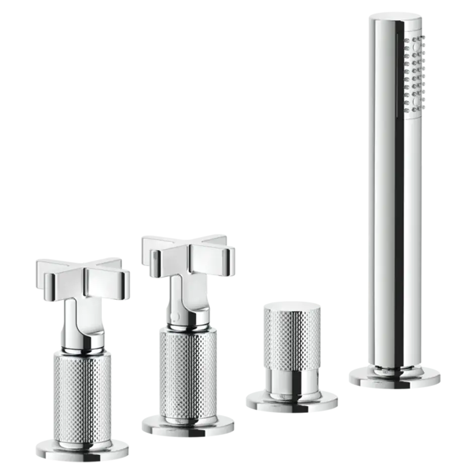 Gessi Inciso+ Смеситель для ванны на 4 отверстия для наполнения через слив-перелив, переключатель, шланг 1,50 м, цвет: black XL