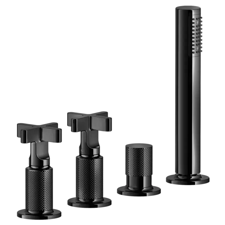 Gessi Inciso+ Смеситель для ванны на 4 отверстия для наполнения через слив-перелив, переключатель, шланг 1,50 м, цвет: black XL