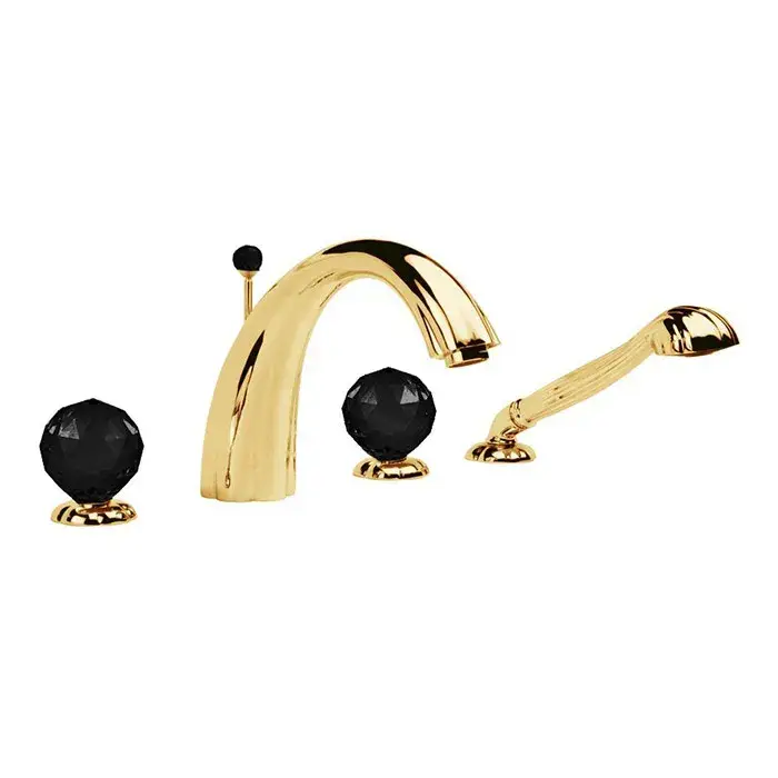 Смеситель для ванны Jorger FLORALE CRYSTAL 600.40.100.020-12 золото, ручки черный хрусталь