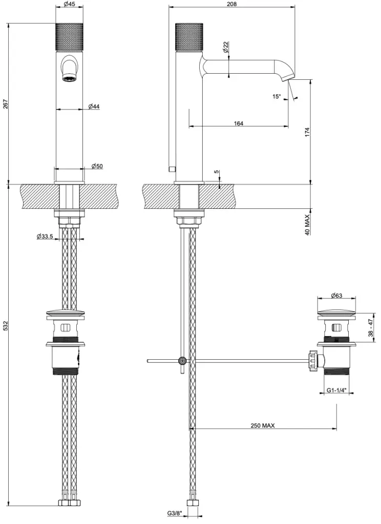 Смеситель Gessi HABITO CESELLO 70405#706 цвет-black metal PVD