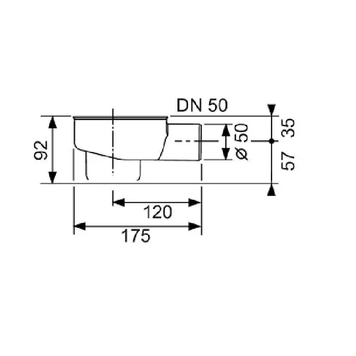 TECE drainline, сифон, 0,8 л/c, DN 50, выход вбок, высота монтажа от нижнего края сифона до верхнего края слива – 120 мм.