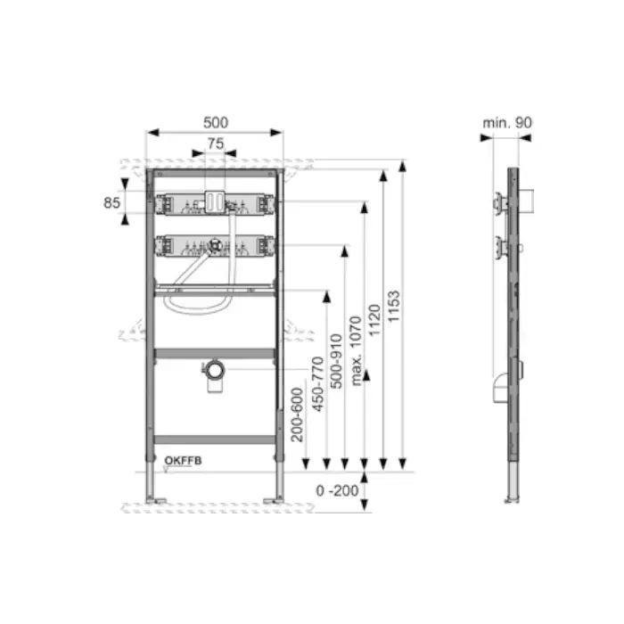 TECE drainline, Комплект для установки дренажного канала 900 мм из нержавеющей стали для пристенного монтажа