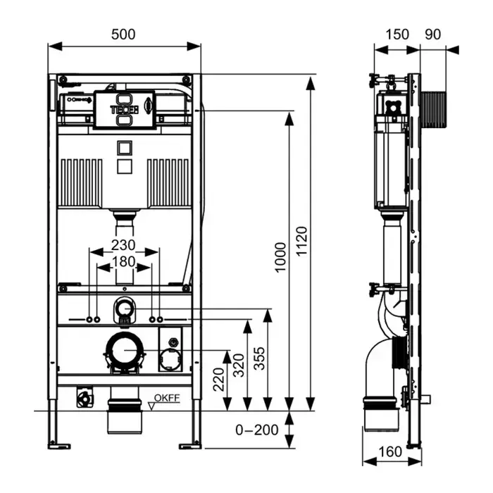 TECE Модуль для установки подв. унитаза TOTO Neorest, высота h1120мм, с креплением к стене