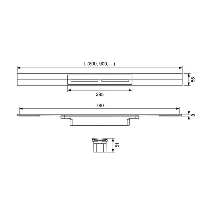 TECE Комплект дренажного канала 800/55 мм. цвет: нержавеющая сталь