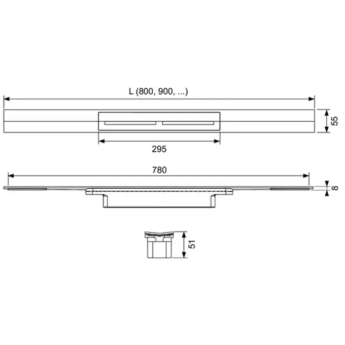 TECE Комплект TECElinus для монтажа дренажного канала 800мм с основой для плитки "tile" и панелью "steel" 2 в 1