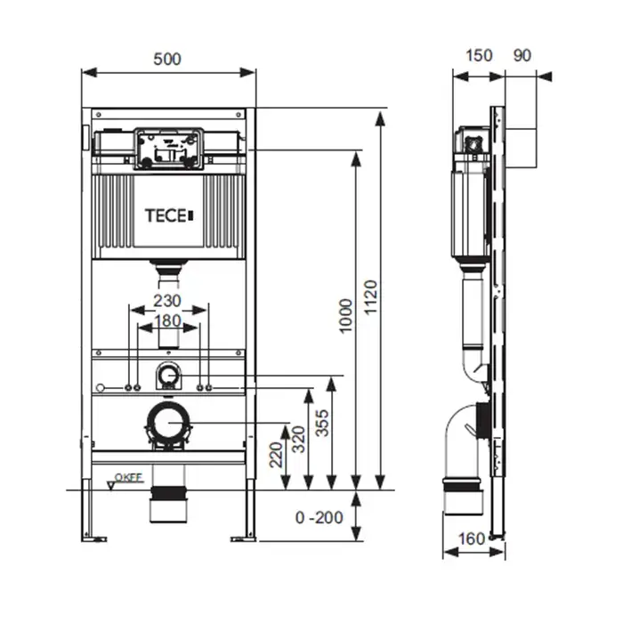 TECE Рама для установки унитаза, высота h1120мм, без крепления к стене