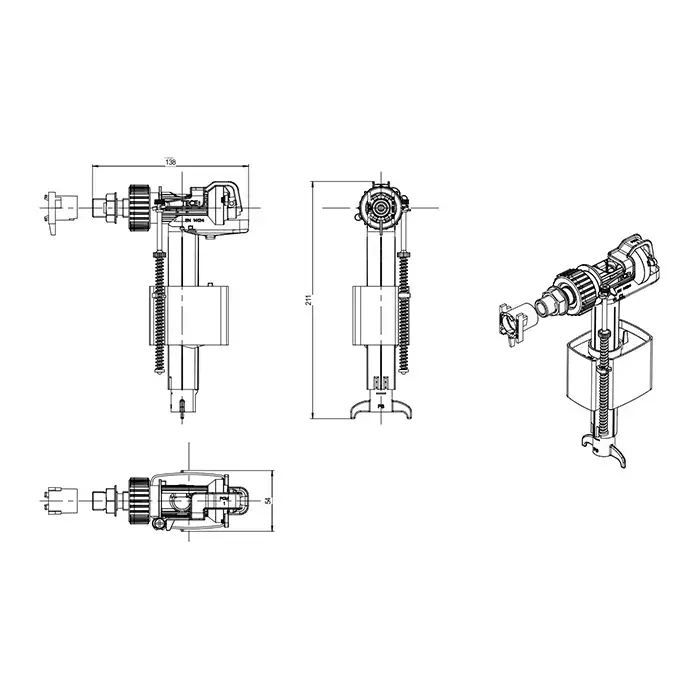 TECE Заливной клапан универсальный для сливных бачков TECE F 10 универсальный, металлическая резьба 3/8"