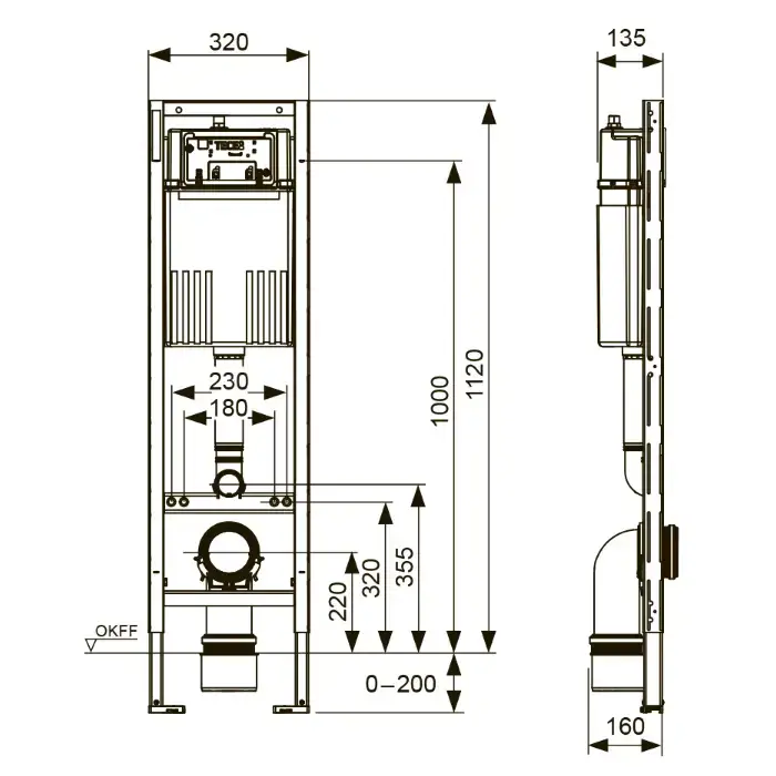 TECEbase Застенный модуль со смывным бачком, ширина 320 мм, высота 1120 мм с комплектом креплений