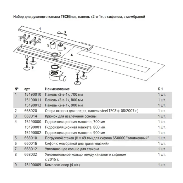 TECElinus Комплект для монтажа дренажного канала 2 в 1: основа для плитки "tile" и панель "steel", 60см., цвет: хром