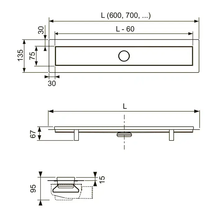 TECE Комплект TECElinus для монтажа дренажного канала 600мм с основой для плитки "tile" и панелью "steel" 2 в 1 (ПРОДАЕМ только с нашего склада!!!)