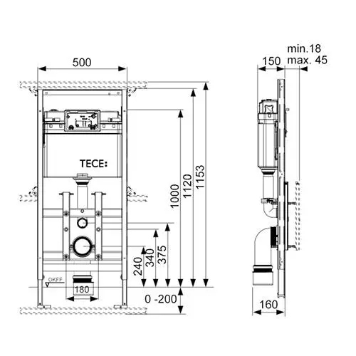 TECElux Модуль для установки унитаза, высота 1120мм, без крепления к стене