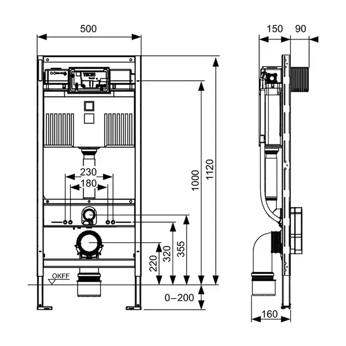 TECEprofil Инсталляция для унитазов-биде, высота h1120мм, без крепления к стене