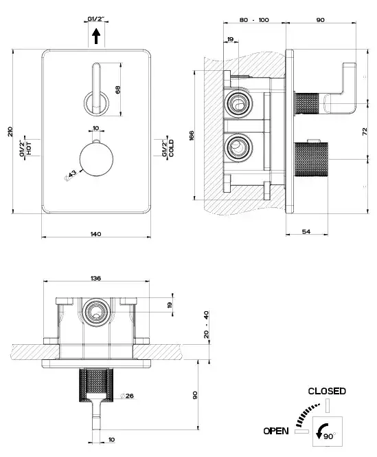 Gessi Inciso Смеситель для душа, встраиваемый, термостатический, резьба 3/4", внешняя часть, цвет: Black XL