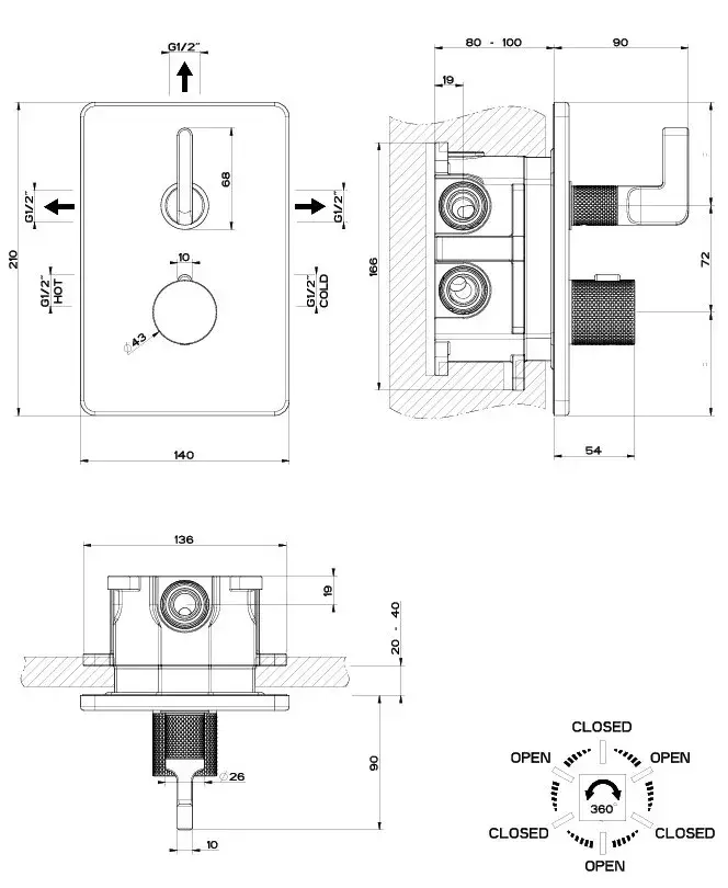 Gessi Inciso Смеситель для душа, встраиваемый, термостатический, резьба 3/4", внешняя часть, цвет: Black XL