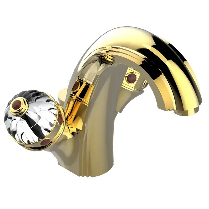 THG AMBOISE JASPE ROUGE Смеситель для раковины на 1 отверстие, с донным клапаном, вставки красная яшма, цвет полированное золото