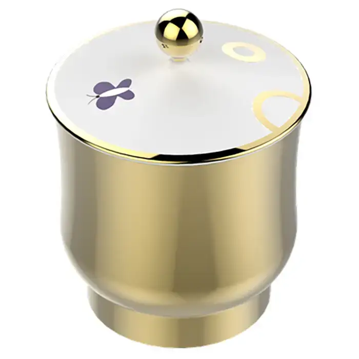 THG CAPUCINE MAUVE DECOR OR Банка керамическая с крышкой, настольная, декор золото/лиловый, цвет: белый