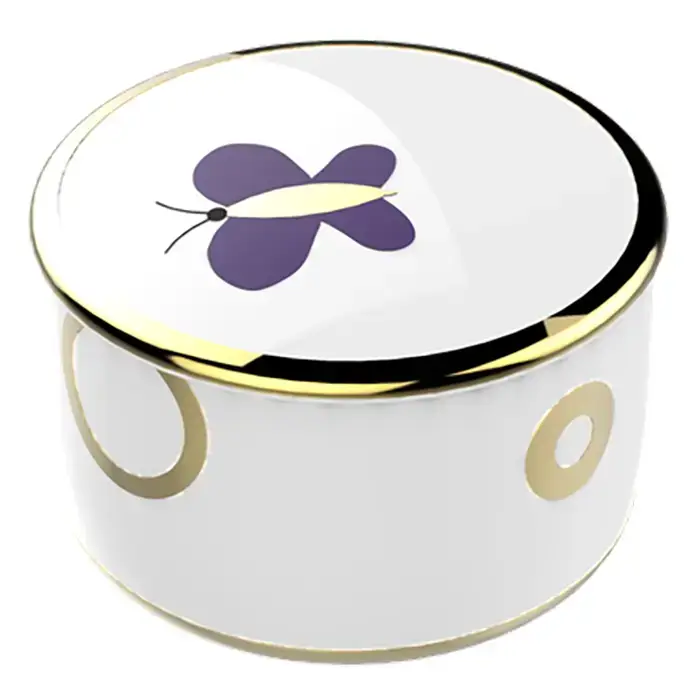 THG CAPUCINE MAUVE DECOR OR Коробка для таблеток керамическая, круглая ø55 мм., настольная, декор золото/лиловый, цвет белый
