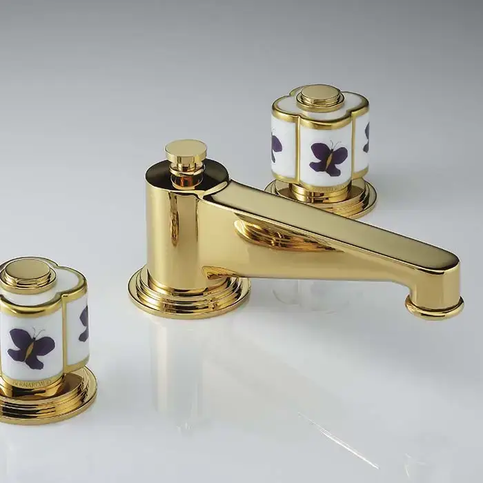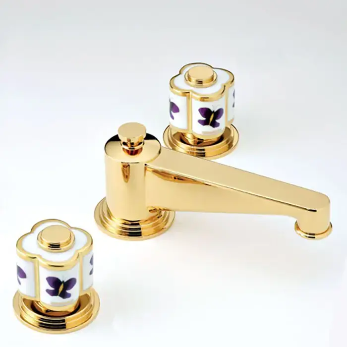 THG CAPUCINE MAUVE DECOR OR Смеситель для раковины на 3 отверстия, с донным клапаном, декор золото/лиловый, цвет полированное золото