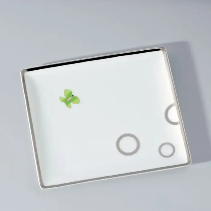 THG CAPUCINE VERT DECOR PLATINE Поднос керамический 171х154 мм., настольный, middle size, декор платина/зеленый, цвет белый