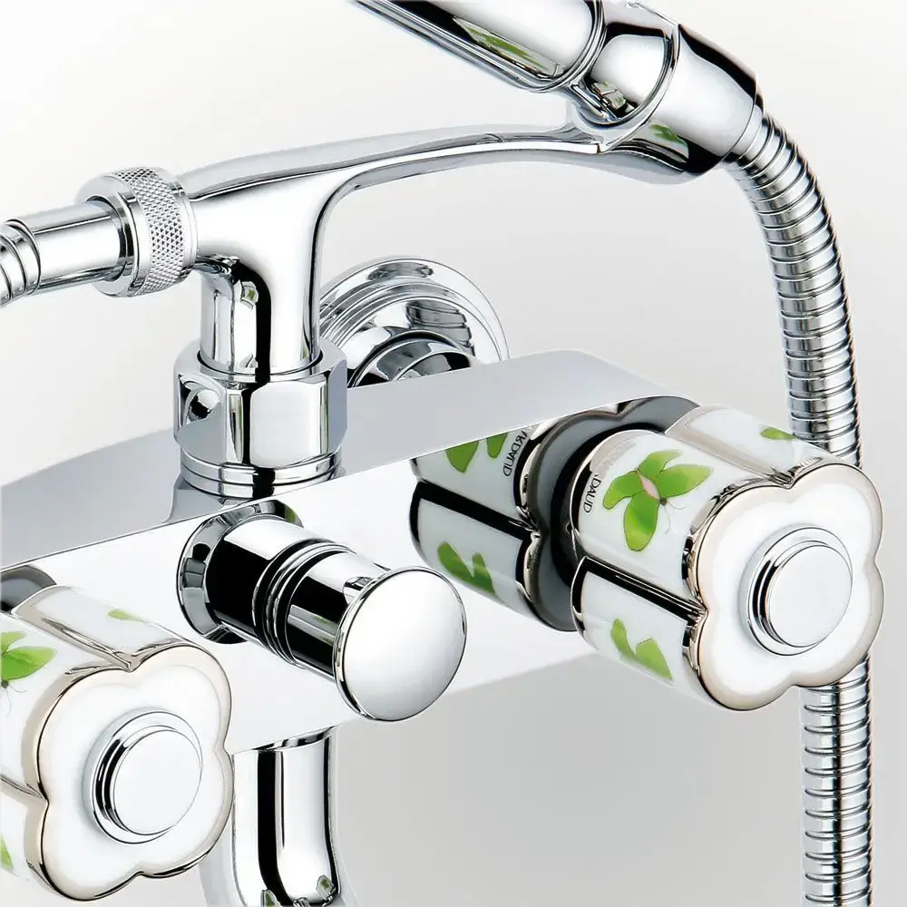 THG CAPUCINE VERT DECOR PLATINE Смеситель для ванны настенный, с ручным душем и шлангом 1500 мм., декор платина/зеленый, цвет хром