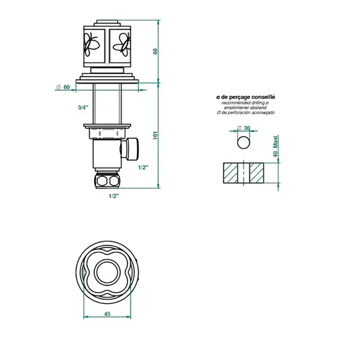 THG CAPUCINE VERT DECOR PLATINE Вентиль смесителя для раковины, декор платина/зеленый, цвет: хром