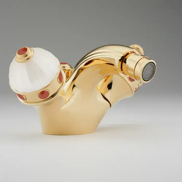 THG CHEVERNY JASPE ROUGE Смеситель для биде на 1 отверстие, с донным клапаном, вставки красная яшма, цвет полированное золото