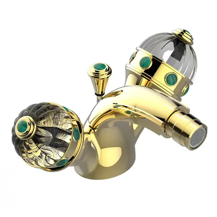 THG CHEVERNY MALACHITE Смеситель для биде на 1 отверстие, с донным клапаном, вставки малахит, цвет полированное золото