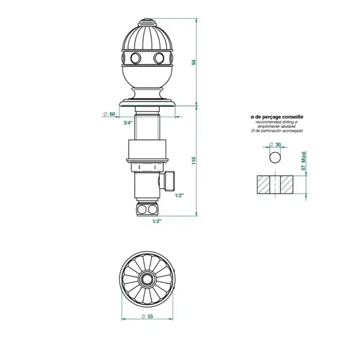 THG CHEVERNY MALACHITE Вентиль смесителя для раковины, вставки малахит, цвет полированное золото