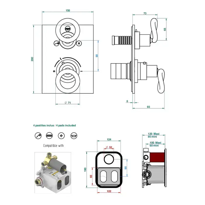 THG Collection "O" Внешняя часть термостата с вентилем/переключателем на 3 положения, цвет Soft matt gold