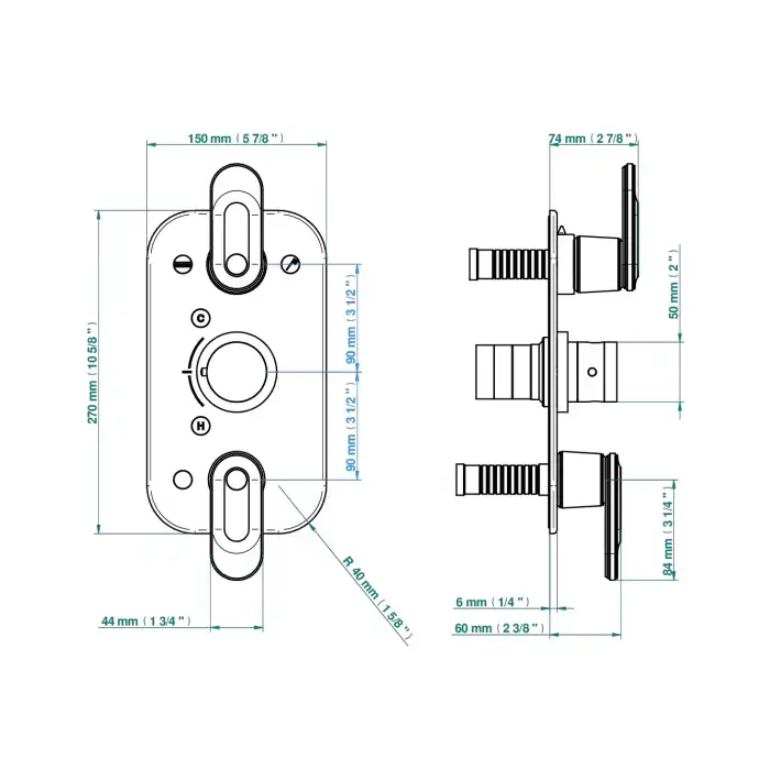 THG CORVAIR A MANETTES FIOR DI BOSCO Смеситель для душа встраиваемый, термост, с запорн вент и перекл на 2 полож, внеш часть, цвет: полированное золото
