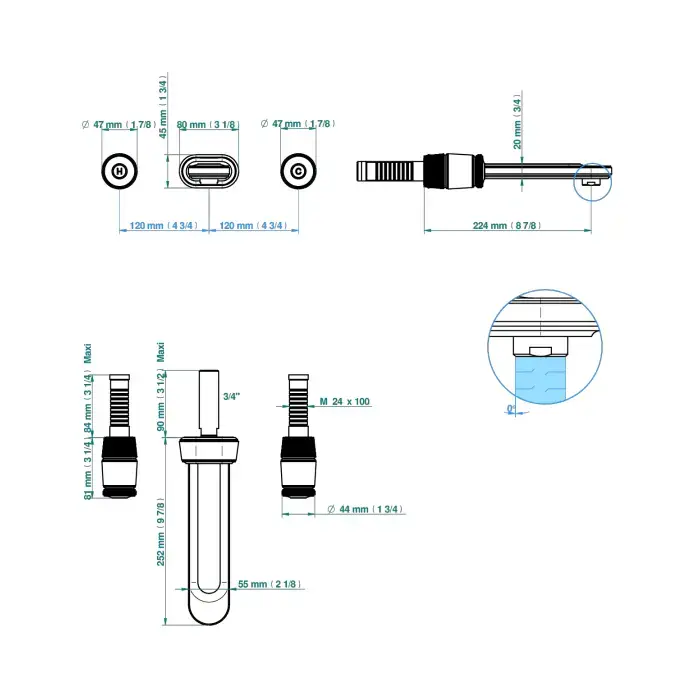 THG CORVAIR Смеситель для раковины настенный, c 2 вентилями, внешняя часть, цвет полированное золото