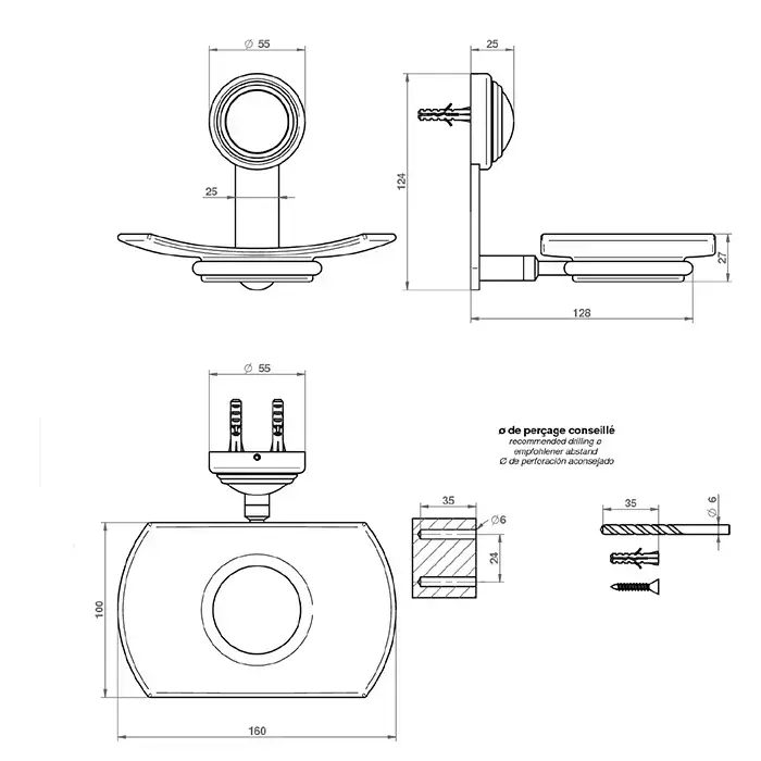 THG DAHLIA Мыльница подвесная, матовое стекло, цвет полированное золото