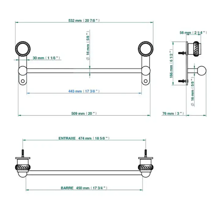 THG DIPLOMATE ROPED RINGS Полотенцедержатель 450 мм., цвет хром/золото