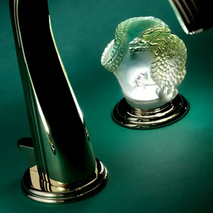 THG JADE DRAGON Смеситель для раковины на 3 отверстия, с донным клапаном, ручки нефрит с подсветкой, цвет полированное золото