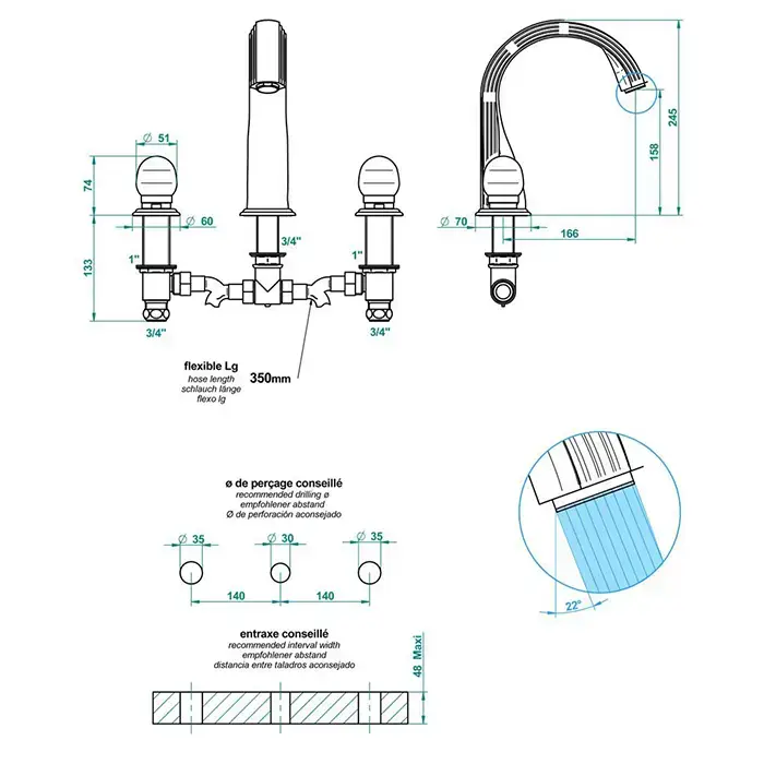 THG Dragon Jade Смеситель для ванны, 3 отв., цвет: золото/хрусталь