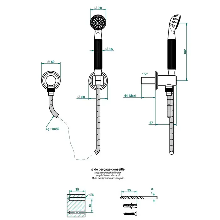 THG MOON DRAGON Душевой комплект с ручным душем, шлангом 1500 мм., подводом воды и держателем, цвет хром